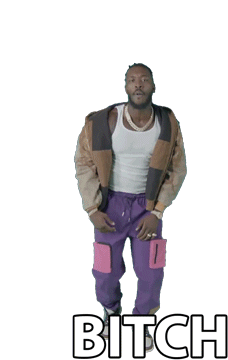 Pardison Fontaine points and makes a mocking gesture, with the word 'BITCH' displayed below him.