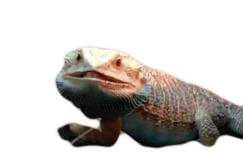 A bearded dragon quickly extends its long tongue to catch unseen prey, showcasing its rapid hunting skill.