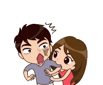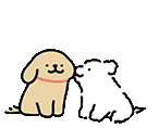 A playful animated sticker featuring two cartoon dogs, one light brown and the other white, with the brown dog playfully biting the white dog's face.