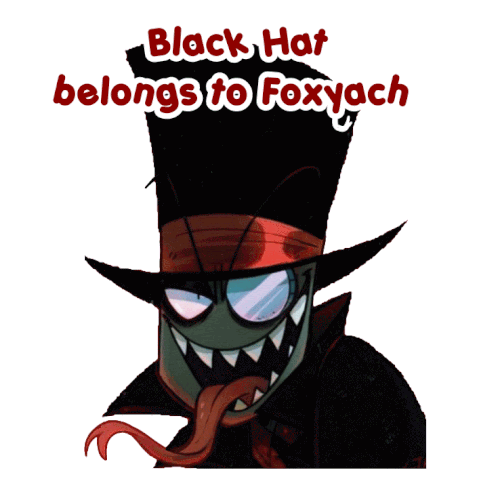 a cartoon character with a tongue sticking out and the words black hat belongs to foxyach above him