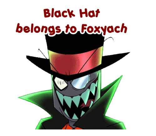 a picture of a cartoon character with the words black hat belongs to foxyach above it