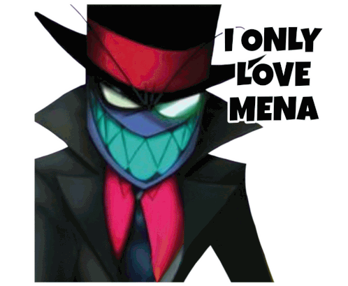 a picture of a cartoon character with the words " i only love mena " on the bottom