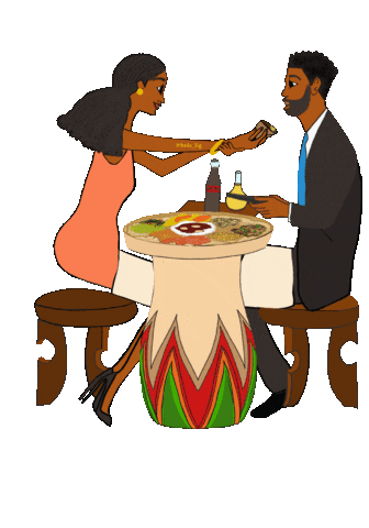 A Black love couple shares a traditional meal, then gets distracted by their phones, highlighting modern relationship challenges.