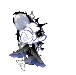 White Pearl Cookie from Cookie Run Kingdom, wielding a spear and surrounded by dark energy, in an animated sticker.