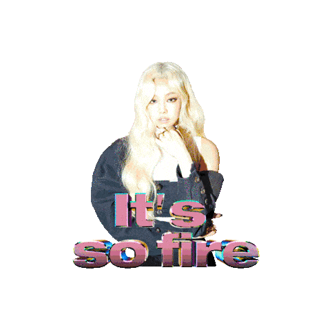 Blackpink's Jennie with long blonde hair, featuring animated glitch text 'It's So Fire' in a vibrant K-pop style.