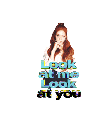 Blackpink's Jisoo with long hair, wearing a light shirt, with the text 'Look at me Look at you' overlayed. A stylish K-pop sticker.