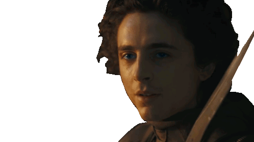 Paul Atreides, portrayed by Timothée Chalamet, holds a blade across his face in a tense moment from Dune Part Two.