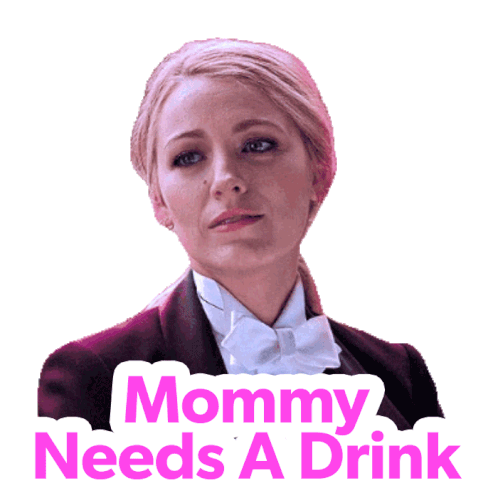 Blake Lively, looking tired, expresses a common sentiment with the caption 'Mommy Needs A Drink'.