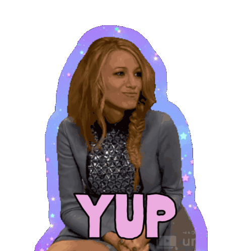 Blake Lively nods with a knowing smirk, affirming with the word 'YUP' in this animated sticker.