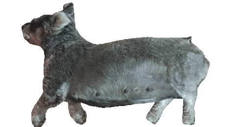 An animated sticker of Blaqui, a cute white and brown cat-like character, quickly running away with a cheerful expression.