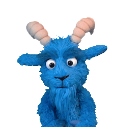 Animated sticker of Blauer Bock, the blue goat puppet, doing a facepalm with a disappointed expression.