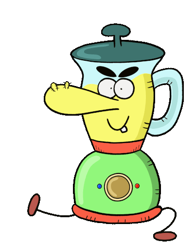 A cheerful animated cartoon blender character with a long nose and wiggling feet, perfect for expressing a happy and positive vibe.