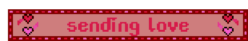 A retro pixel art blinkie sticker with a decorative border, displaying the heartfelt message 'Sending Love' with small hearts.