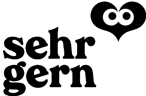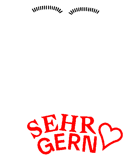 Animated sticker with blinking eyes and the German phrase "SEHR GERN" (Very gladly) appearing with a heart.