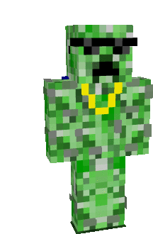 a creeper in a minecraft skin is wearing sunglasses and a gold chain around his neck .