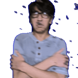a man wearing glasses and a blue shirt is crossing his arms