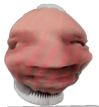 A grotesque, fleshy blob head distorts and changes shape, creating an unsettling and surreal animated sticker.