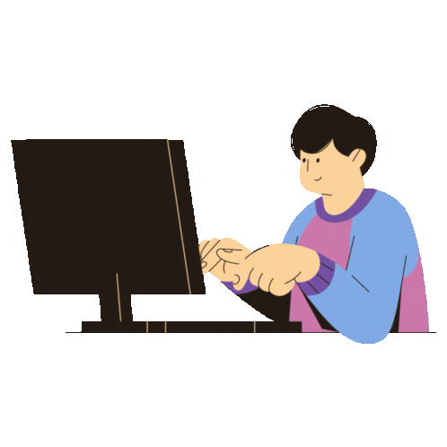 Simplyirfan, a cartoon character, is busy typing on a computer, perfect for blog and content creation themes.