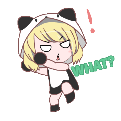 An animated blonde chibi girl in a panda hoodie looks unwell, holding her stomach with a distressed expression.