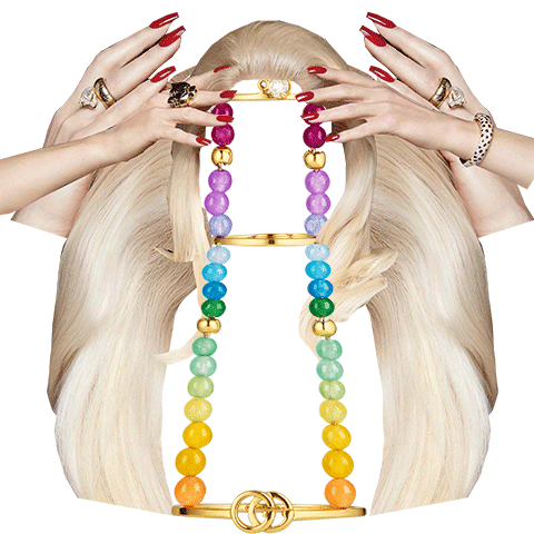 Animated sticker of a glamorous blonde diva, possibly wearing Gucci and jewels, with a stylish swinging motion.