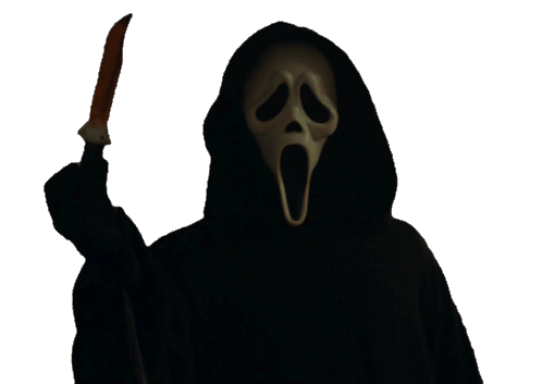 Ghostface, the iconic horror character, holds a bloody knife, ready to strike. A chilling sticker from the Scream movie franchise.