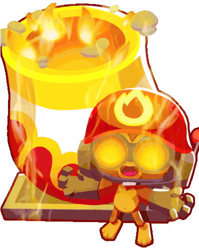 a cartoon character with a flame on his head is standing next to a bucket of gold
