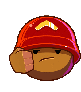 A Bloons character, a round brown figure in a red helmet, expresses disapproval with a clear thumbs-down gesture.