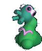 A green Blorb Elysian Eclipse creature with pink eyes and purple accents jiggles playfully, a fun gaming sticker.