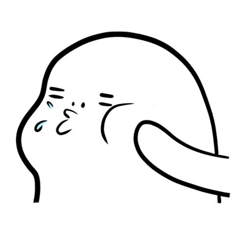 Animated black and white drawing of a blob-like creature being hit, showing a pouting expression.