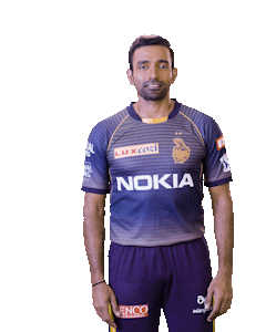 Indian cricketer Robin Uthappa, in his Kolkata Knight Riders uniform, blows a charming flying kiss to the camera.