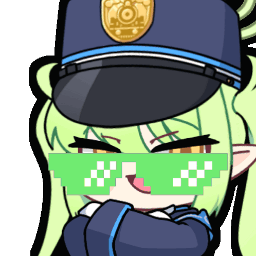 Nozomi from Blue Archive, with green hair and rainbow glasses, smiles with arms crossed in this anime sticker.