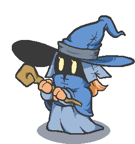 A charming pixel art sticker featuring a blue mage hero, complete with a pointed hat and a magical staff.