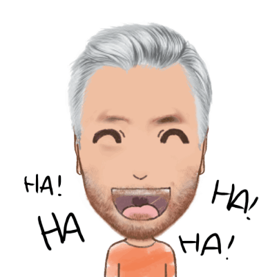 Bluekutug, a cartoon man with gray hair and a beard, laughs heartily with 'HA! HA HA!' text.