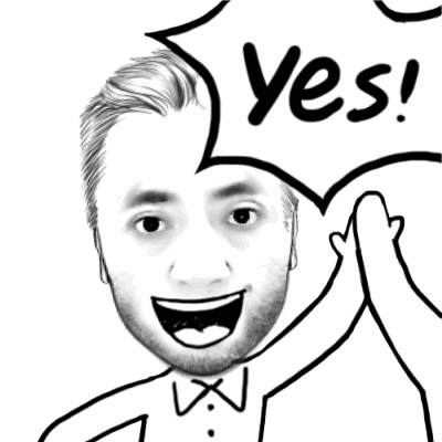 A black and white drawing by Bluekutug of a man with a bow tie, nodding and saying 'Yes' in a speech bubble.