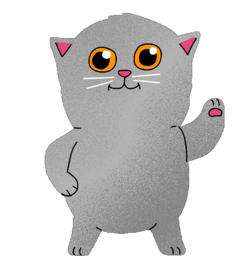 Blukittie Blucat, the adorable grey cat, waves hello with a friendly smile, perfect for greeting friends.