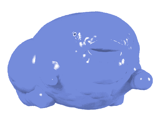 A cute, squishy blurple blob creature with small eyes and a gentle smile, wiggling softly.