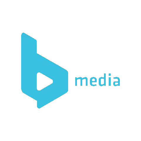 A clear and vibrant display of the Bmedia Bahrain logo, featuring a stylized light blue 'b' with an integrated play button icon and the word 'media'.