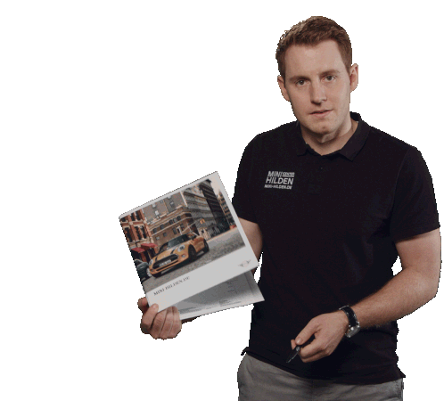 Hans Brandenburg from Mini Center Hilden points to a document with a spark plug diagram, smiling at the camera.