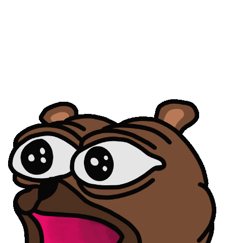 Bobo The Bear, a brown cartoon character, shows an exaggerated 'poggers' reaction with wide eyes and an open mouth.