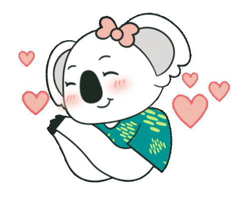 A cute Bobobox Bobopod koala character expresses love with floating hearts and a sweet smile.