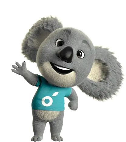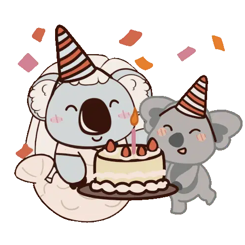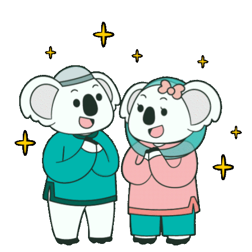 Two adorable Bobobox koalas in traditional attire, offering an Eid Mubarak greeting with folded hands and sparkling stars.
