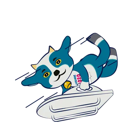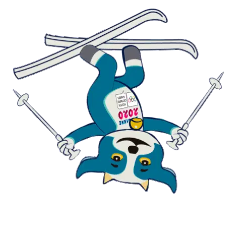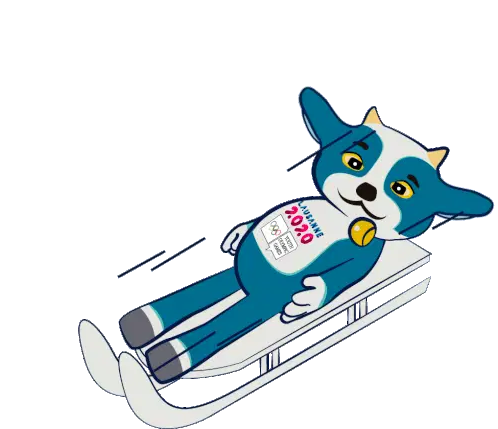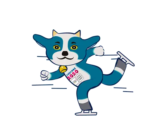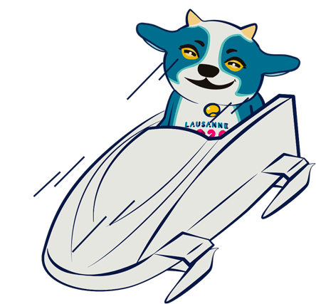 Yodli, the official mascot of the Lausanne 2020 Winter Youth Olympic Games, speeds down a bobsleigh track.