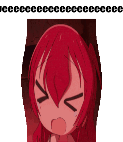 Ikuyo Kita from Bocchi The Rock appears squishy and distorted, accompanied by the elongated 'jeeeee' text.
