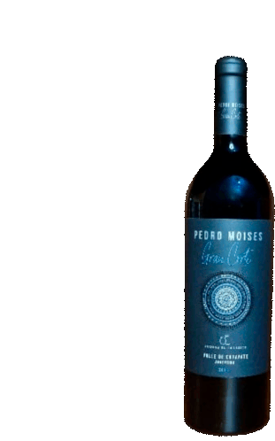 A bottle of Pedro Moises Gran Corte wine from Bodega El Tránsito, featuring a distinctive blue label.