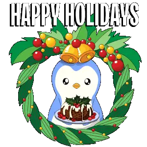 A festive sticker wishing "Merry Christmas" in Hungarian and English, featuring holiday decorations and ornaments.