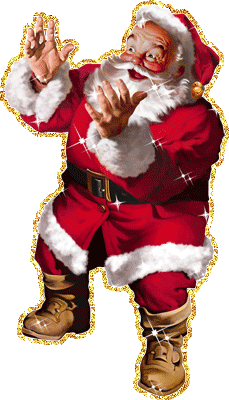 A festive animated sticker featuring a dancing Santa Claus wishing "Boldog Karácsonyt" (Merry Christmas) at a party.