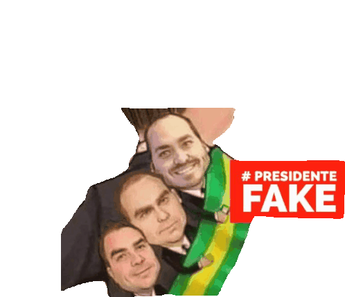 An animated sticker featuring multiple faces of Jair Bolsonaro with a Brazilian sash and the text '# PRESIDENTE FAKE'.