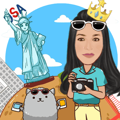 Suyanne, possibly with Bolsonaro, traveling in the USA, wearing a crown and sunglasses, holding a camera with a sheep friend.