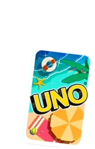 An animated sticker featuring a blue card with an angry black bomb icon, reminiscent of an Uno card.
