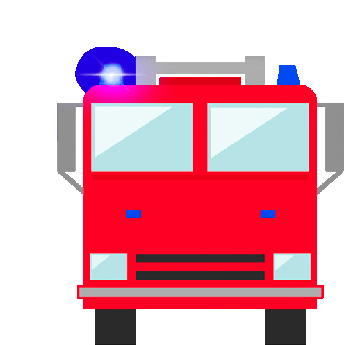 Animated sticker of a vibrant red fire truck, featuring flashing blue emergency lights on top and front, ready for action.